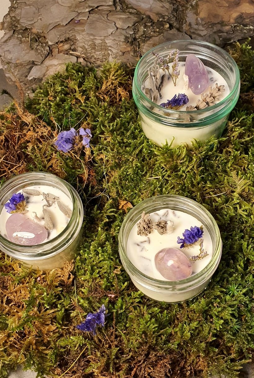 Offrez-vous un moment de détente avec cette bougie artisanale à la cire de soja naturelle parfumée aux huiles essentielles de lavande , délicatement décorée de pierres d’améthyste . Son parfum naturel aux notes florales apaise l’esprit, favorise la relaxation et crée une atmosphère douce et chaleureuse dans votre intérieur.